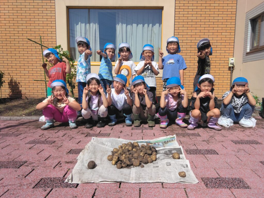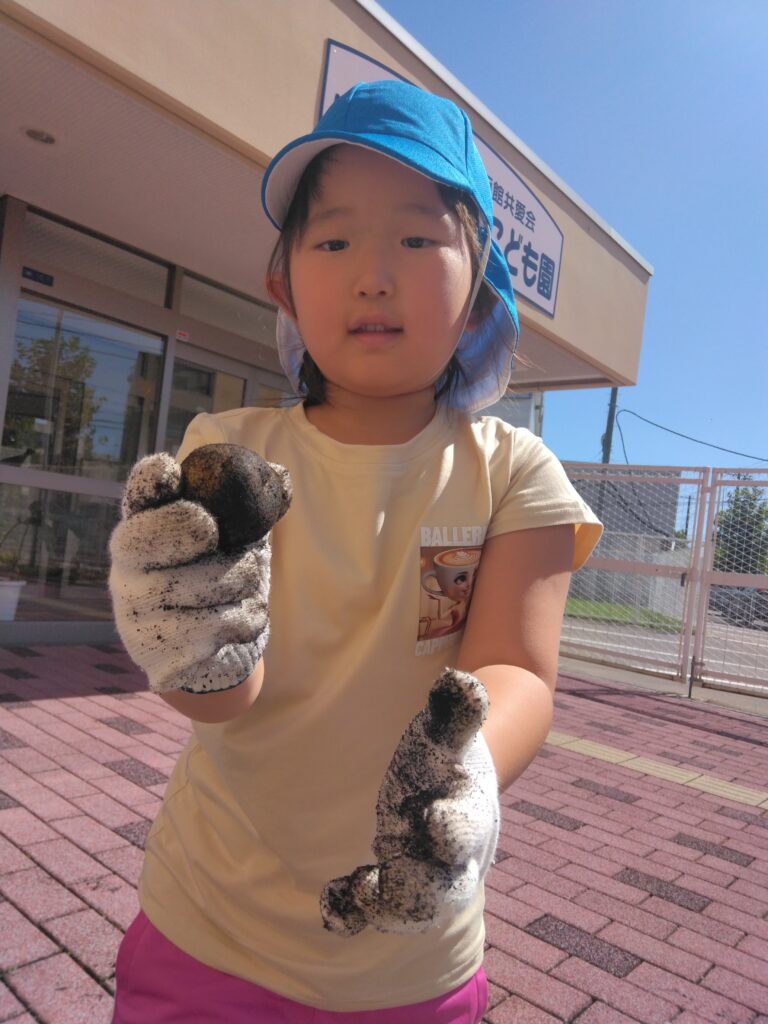 土を掘るとコロコロと出てくるじゃがいもに大喜びのさくらさんでした☺