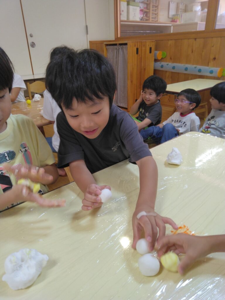 まん丸お月様をイメージしながらお団子づくりを楽しんでいました☺