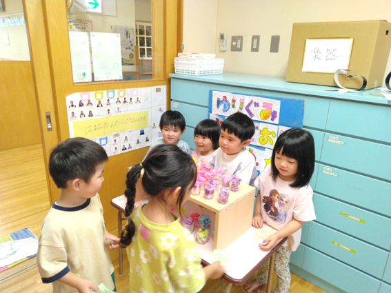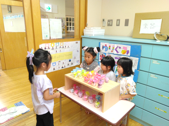 制作あそびでつくったかき氷で、かき氷屋さんを開きました♪