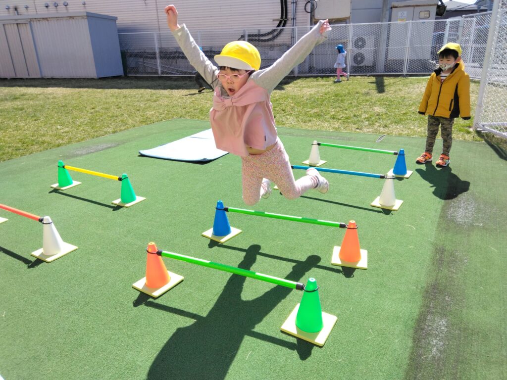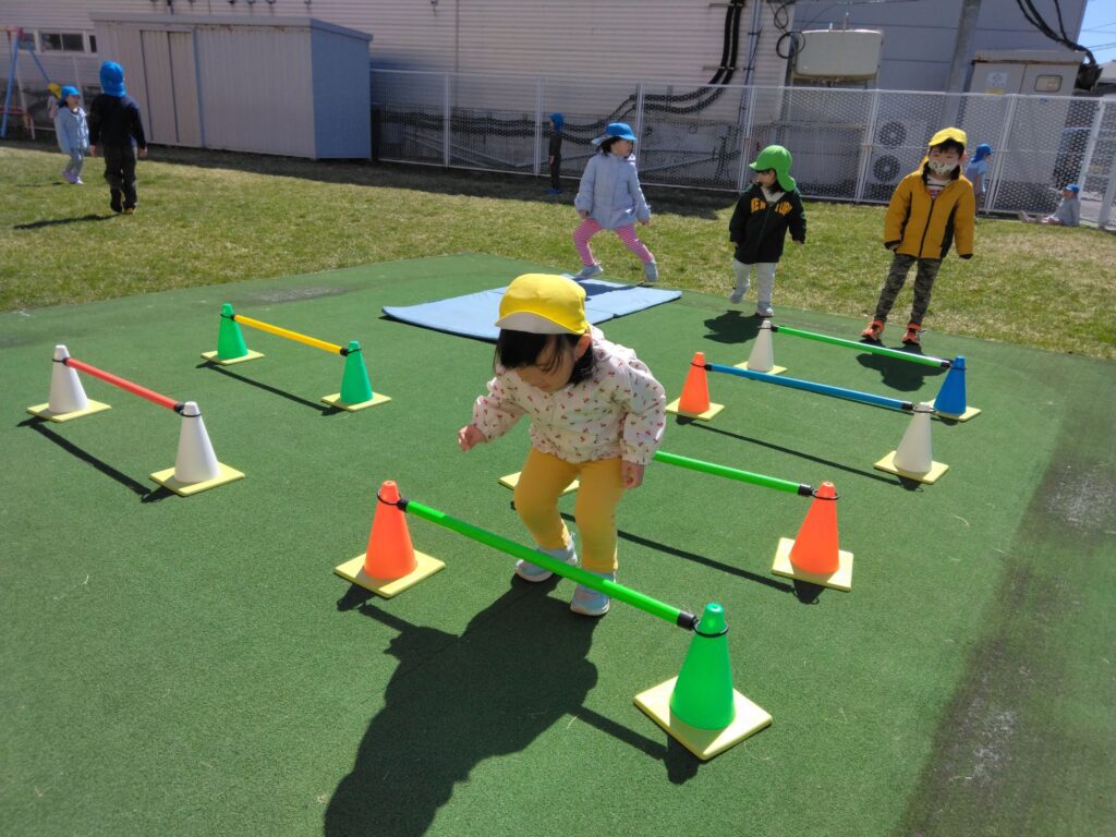 戸外でのびのびと体を動かして遊ぶことを楽しんでいます💕すずらん組になり、色々な運動遊びに興味を持ち、積極的に取り組んでいますよ!