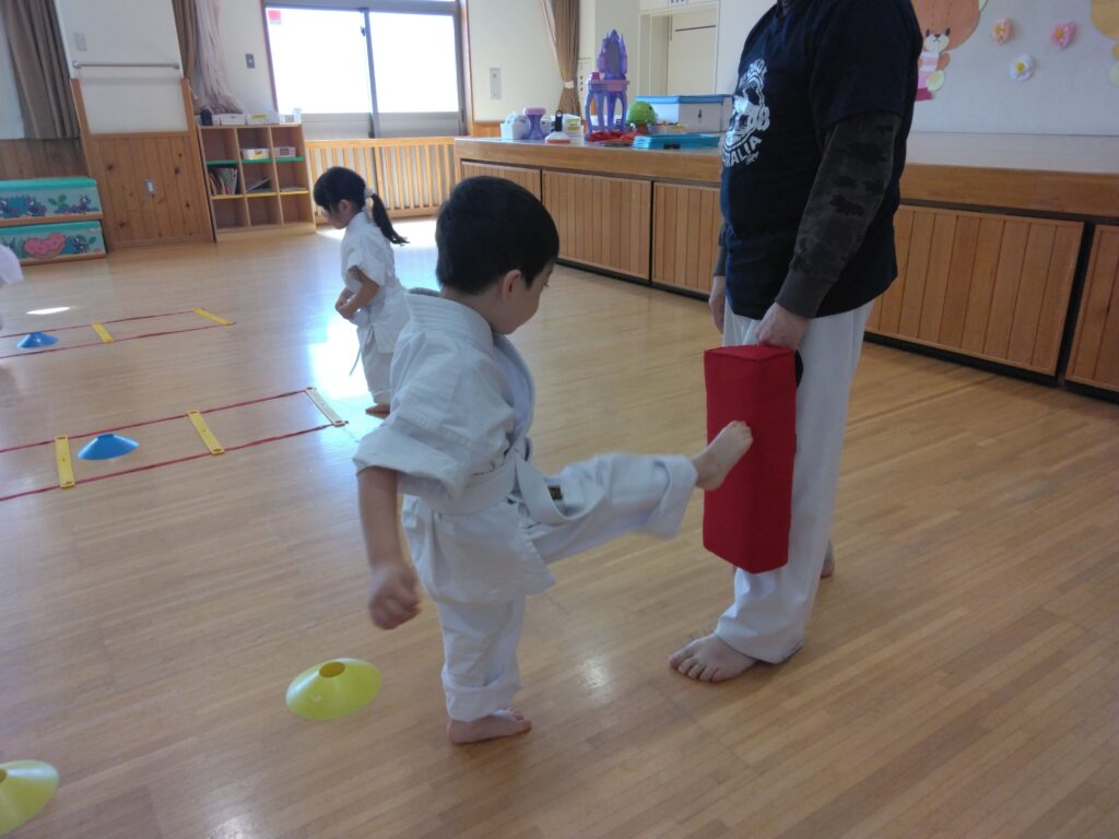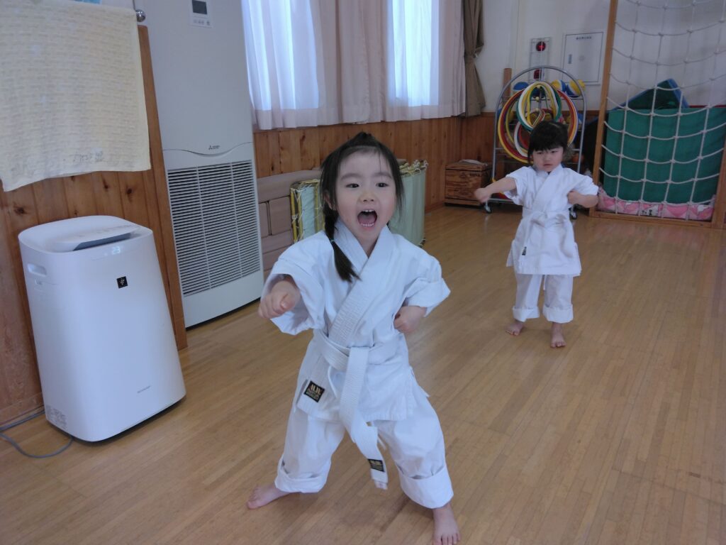 すずらん組が楽しみにしていた空手塾がありました。気合を入れて声を出したり、体を動かしたりと、一生懸命取り組んでいましたよ!来月からも頑張りたいと思います✨
