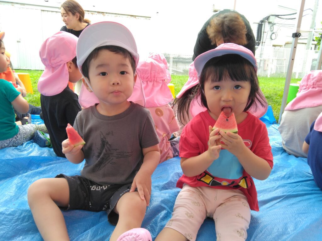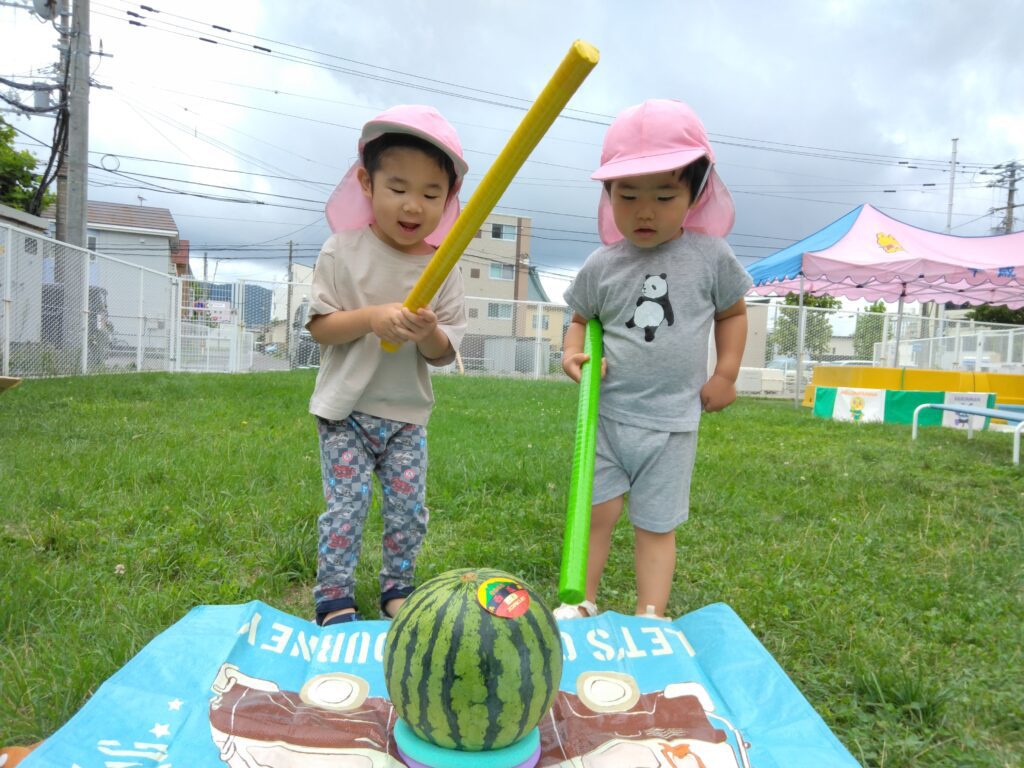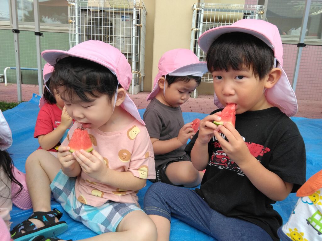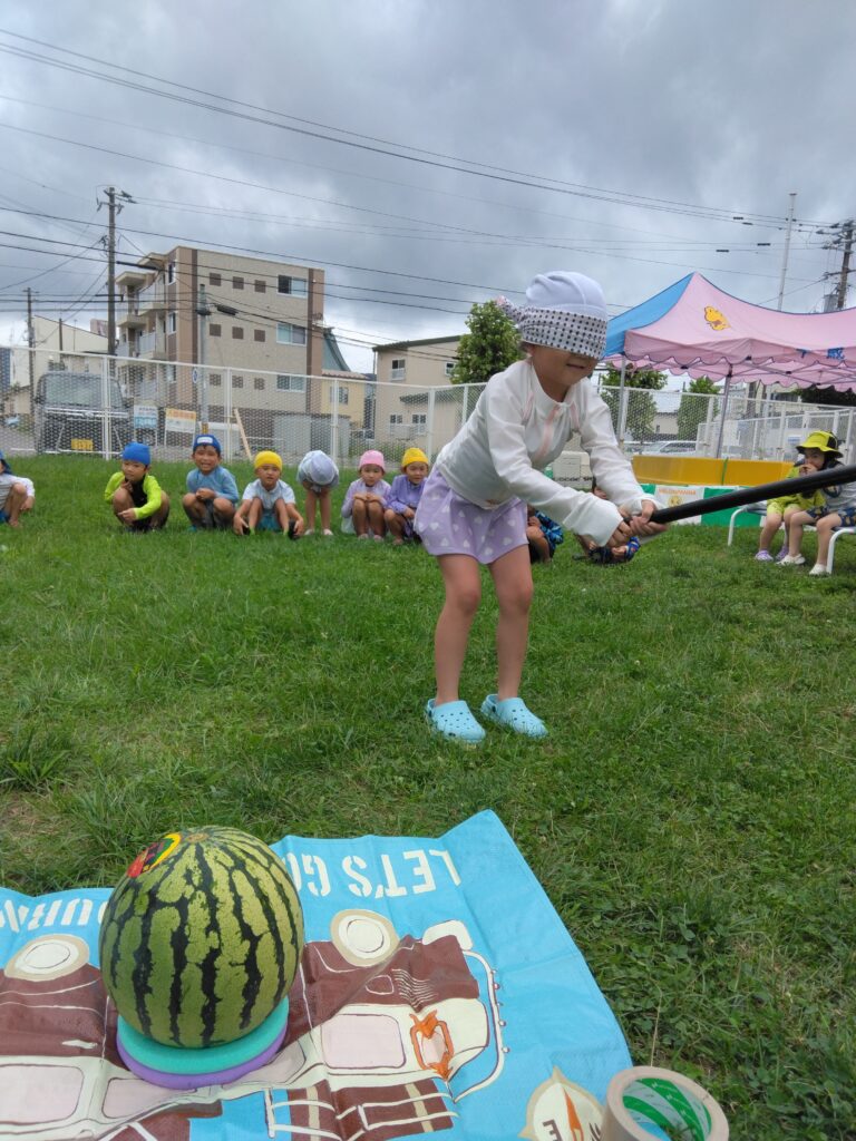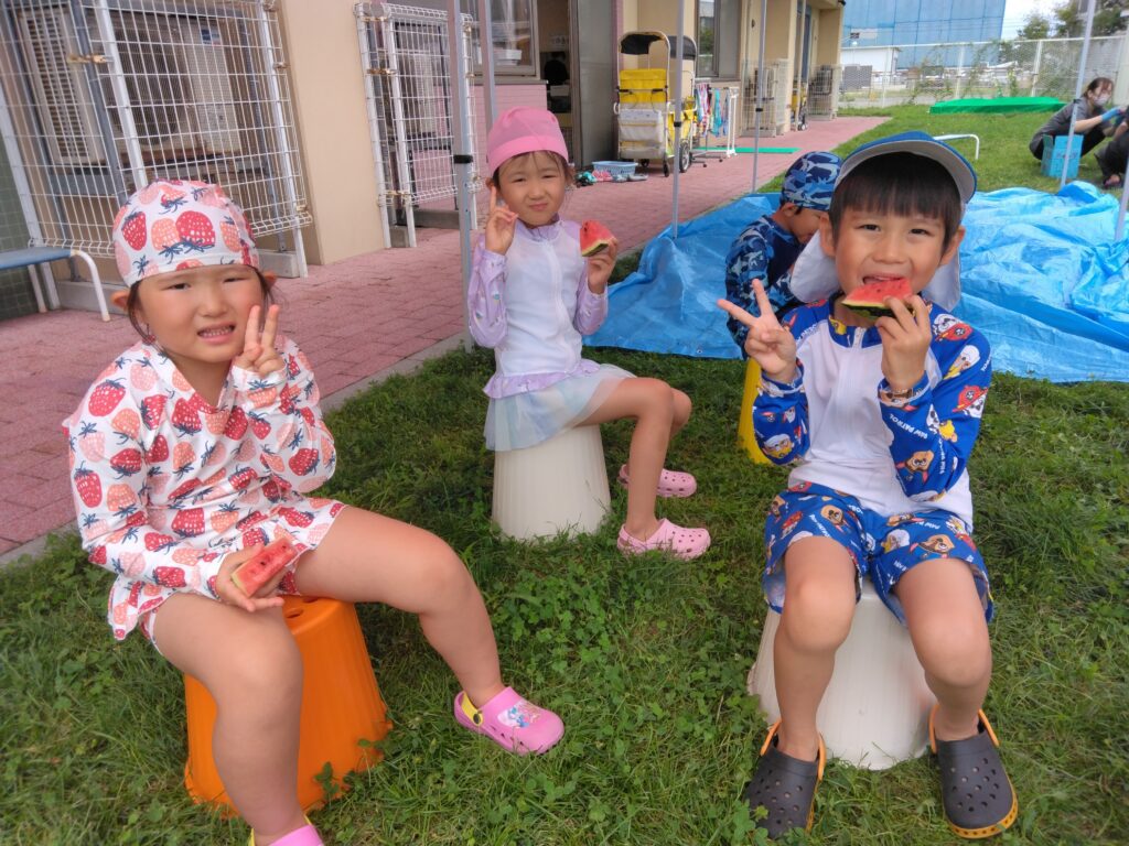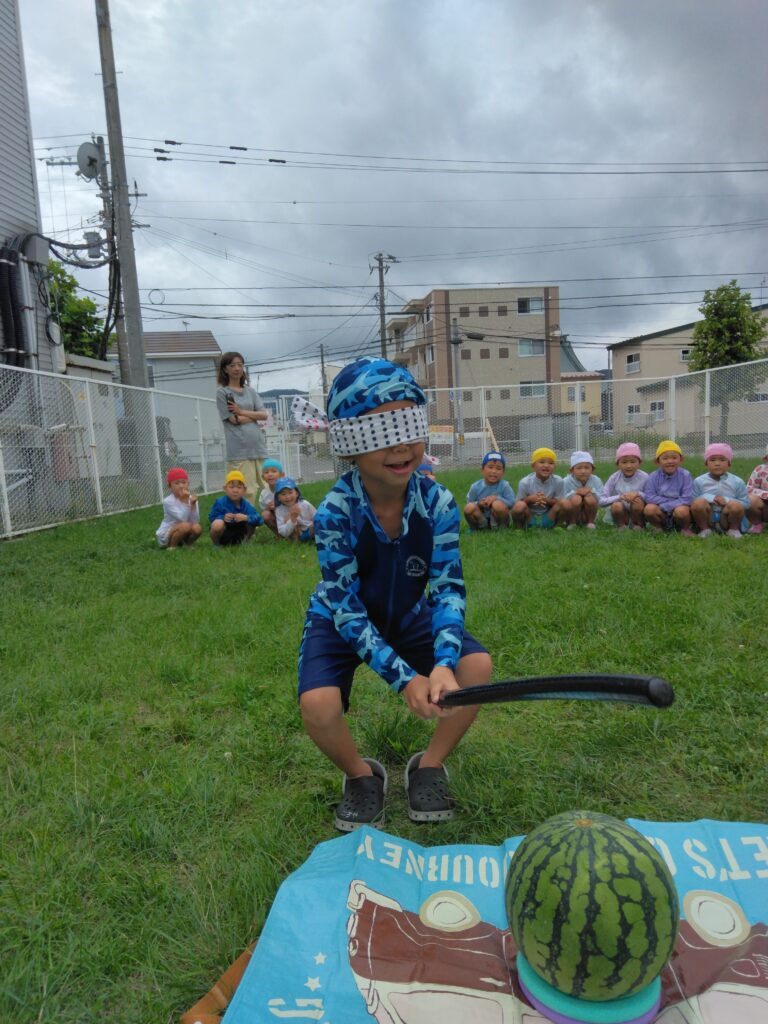 すいかと一緒に写真を撮ったり、すいか割りをした後にたーっくさん、すいかを食べましたよ☆