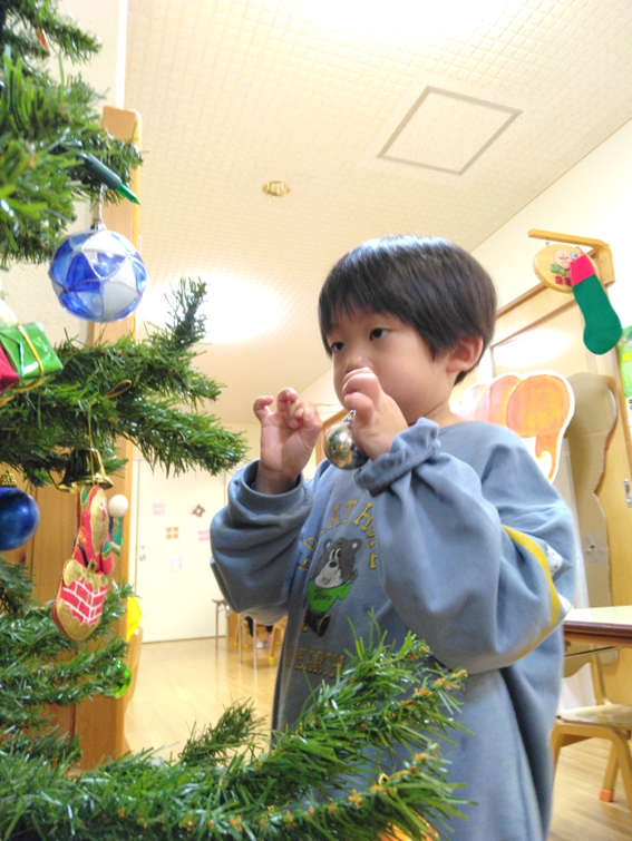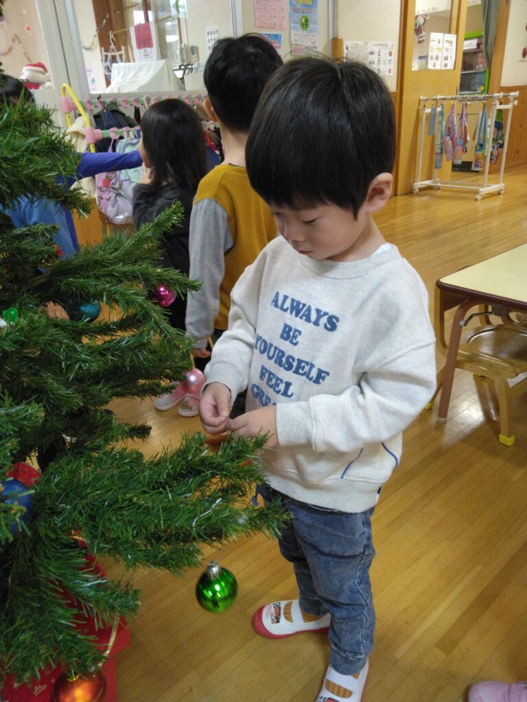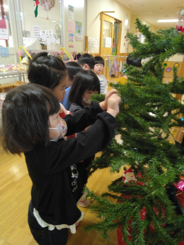12月になり、クリスマスツリーを出したので、ゆり・すずらん・さくら組で飾りつけをしました!